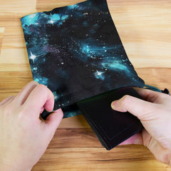 Always gaming on the go? Carry everything you need and more using our specially crafted dice bag. But this bag is designed to hold more than just dice. We make it so you can carry other essential accessories and gear with your dice, including deck boxes, life counters, extra sleeves, and pens. Quality is just as important as quantity, which is why our dice bags are crafted using premium material as well. Featuring a soft inner lining and microfiber on the inside and vibrant pre-designed artwork on the outside, our dice bag has an amazing look and feel to it!