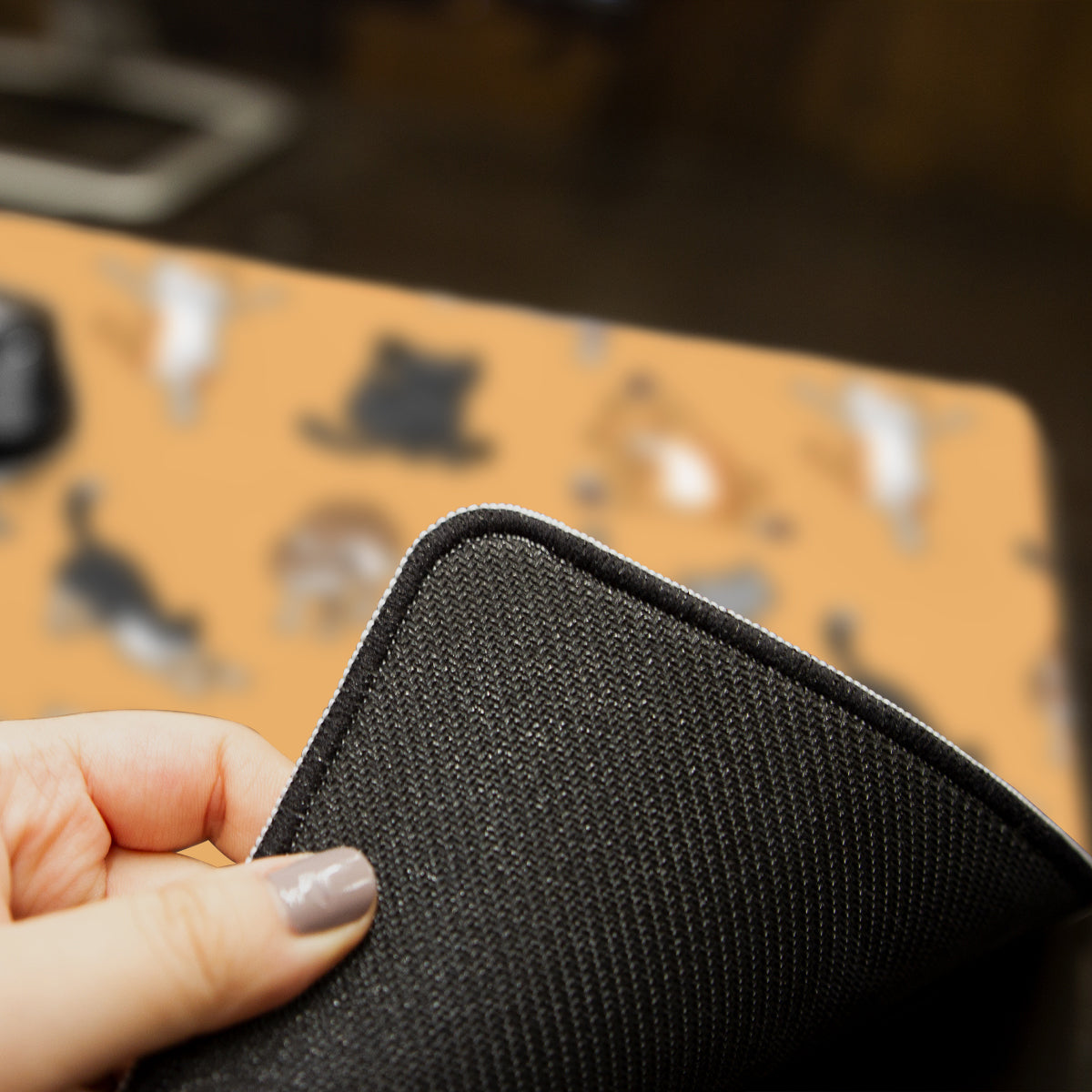 Need a new mousepad that features quality craftsmanship and creativity? Then you’ve definitely come to the right place. Our mousepads are made in-house with premium materials and unique artwork that give your battlestation the supreme look and feel that it deserves. The top is made from sleek polyester, which enables faster, more precise mouse movements. This enhanced speed and precision come in handy whether you’re working or gaming. On the bottom, there’s a strong anti-slip rubber backing that holds a nice, tight grip on your desk while you’re doing your thing. The action and traction this pad provides give you a better overall experience in completing daily tasks, deadlines, and missions of all kinds. And because we’ve added more sizing options to it, you no longer have to worry about running out of room at the worst moments either. The sizes are Classic, Large, and XL. The Classic mousepad has unstitched edges. However, the Large mousepad does include stitched edging, while the XL mousepad has both a stitched or unstitched edging option available. The stitched edging is intended to keep fraying at bay every time you play. You can see the approximate measurements of all those sizes in the details below. We think you’ll be impressed…if you aren’t already!