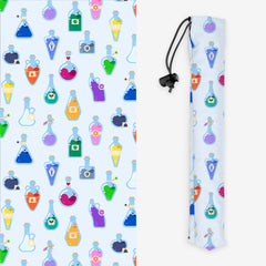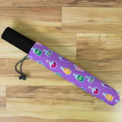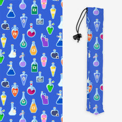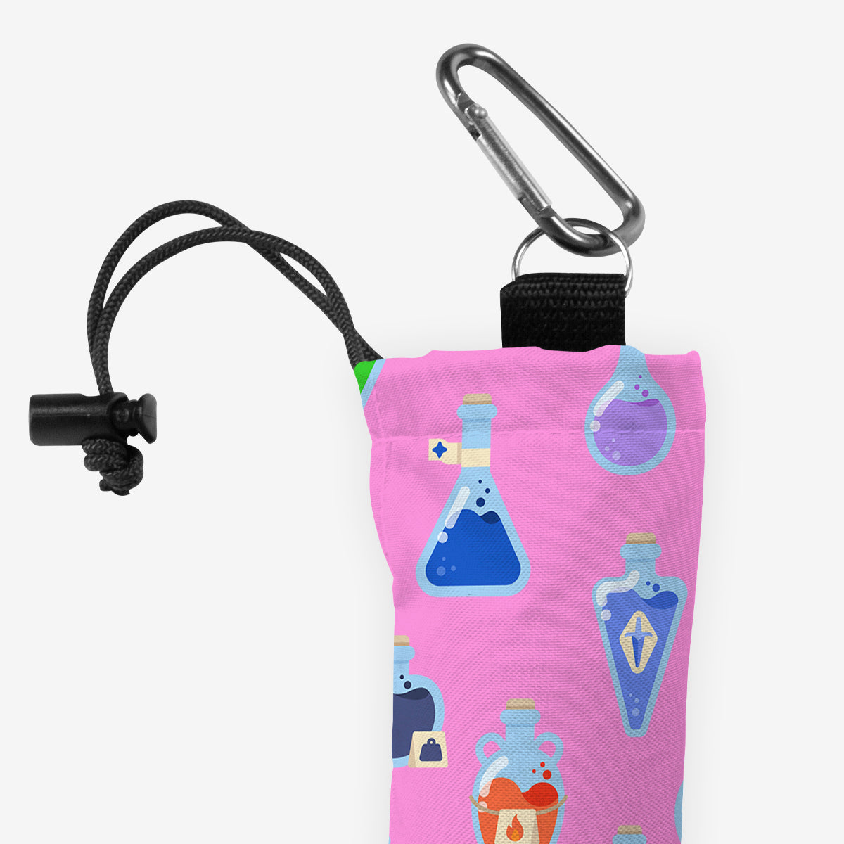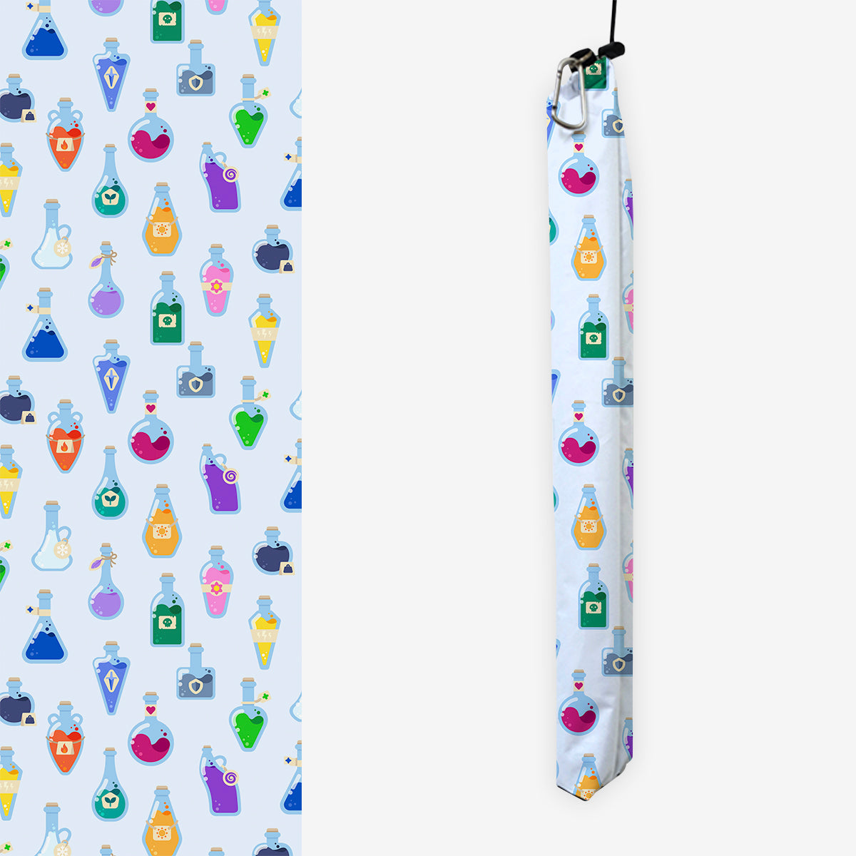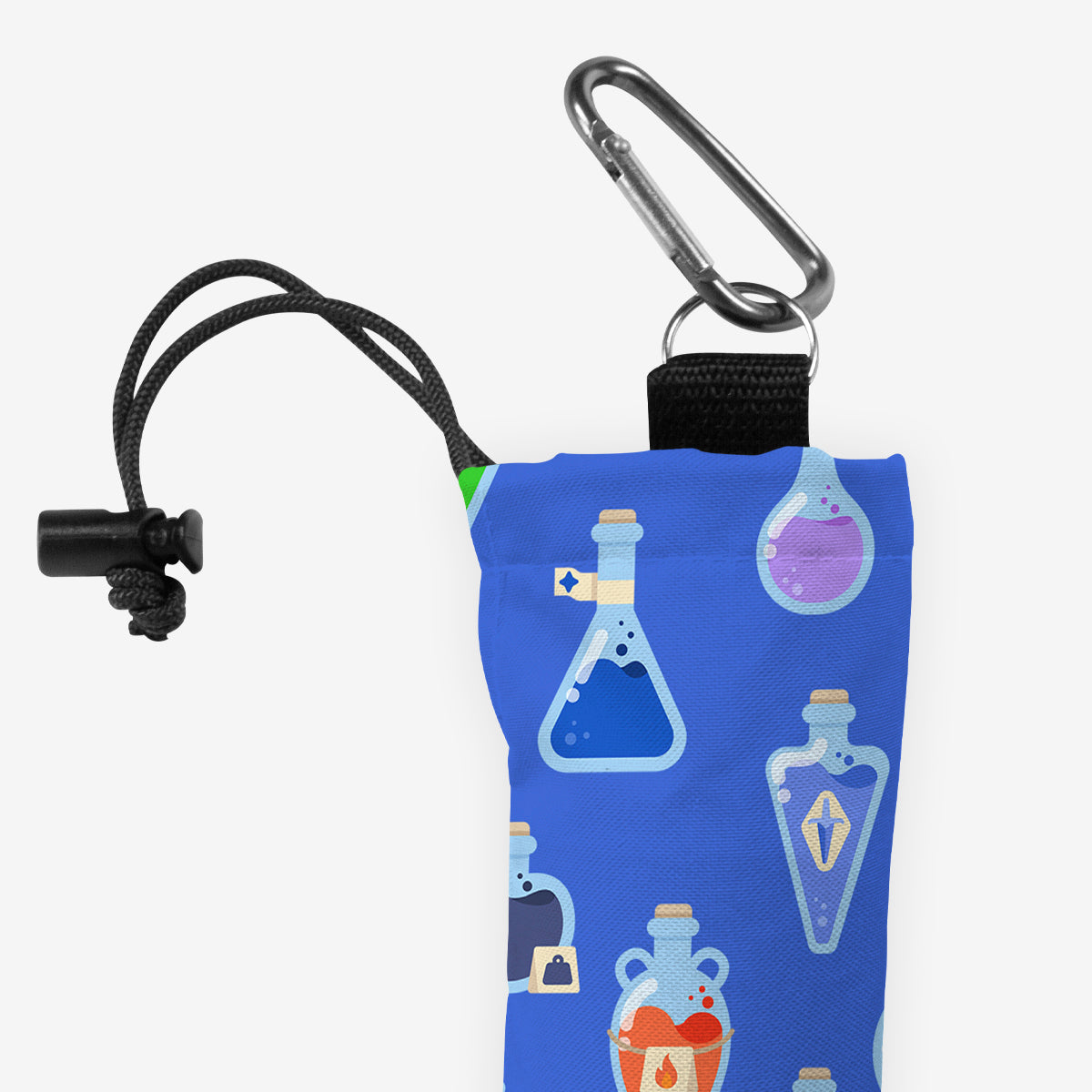 Playmat Bags are specifically designed to hold your mats in style. They are large enough to carry up to two mats. They are coated to be water resistant and include a strap with carabiner for carrying on your backpack. Our bags are hand made in house, and to order. A design that is vertical or patterned would be best for this type of product.