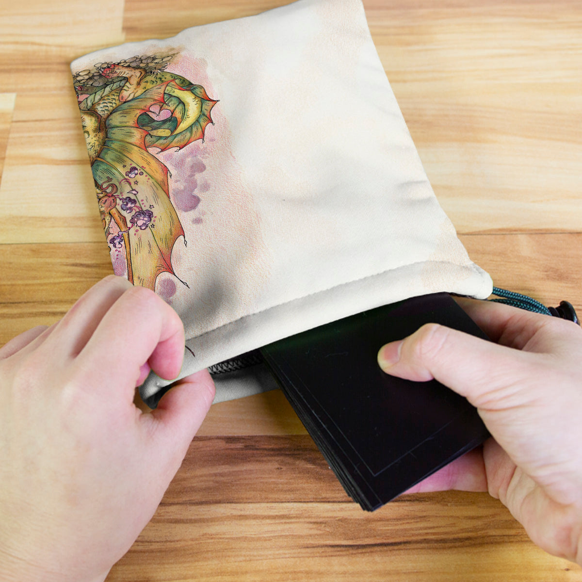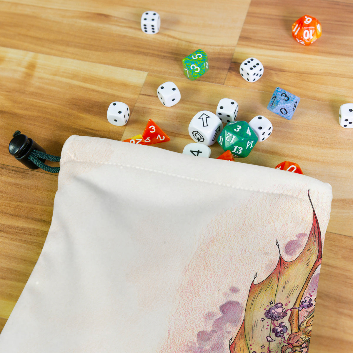 Always gaming on the go? Carry everything you need and more using our specially crafted dice bag. But this bag is designed to hold more than just dice. We make it so you can carry other essential accessories and gear with your dice, including deck boxes, life counters, extra sleeves, and pens. Quality is just as important as quantity, which is why our dice bags are crafted using premium material as well. Featuring a soft inner lining and microfiber on the inside and vibrant pre-designed artwork on the outside, our dice bag has an amazing look and feel to it!