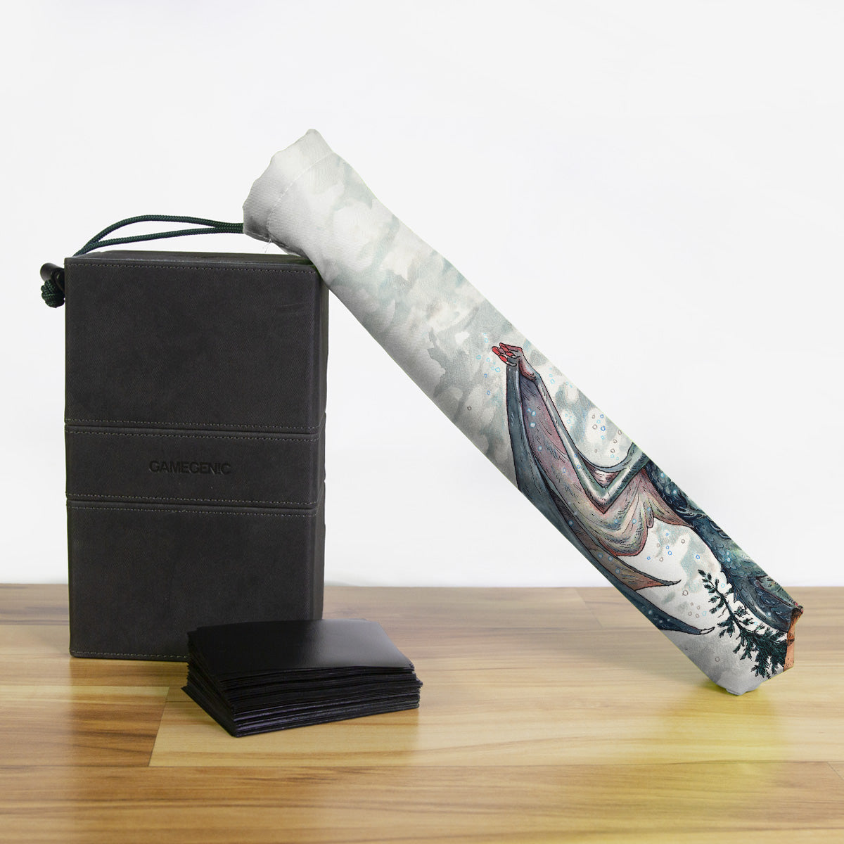 Keep your playmat in pristine condition wherever you go with one of our handcrafted playmat bags. This playmat bag is specifically designed to protect your playmat and can hold two standard sized mats at the same time (in case you need a backup or your friend forgets theirs). Each bag is made in-house and features a water-resistant coating along with a drawstring and carabiner clip for secure carrying. So you can take your game anywhere and in any weather.