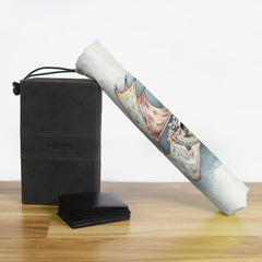 Keep your playmat in pristine condition wherever you go with one of our handcrafted playmat bags. This playmat bag is specifically designed to protect your playmat and can hold two standard sized mats at the same time (in case you need a backup or your friend forgets theirs). Each bag is made in-house and features a water-resistant coating along with a drawstring and carabiner clip for secure carrying. So you can take your game anywhere and in any weather.